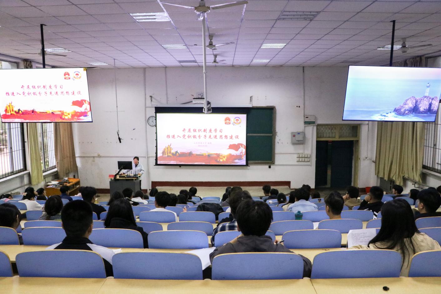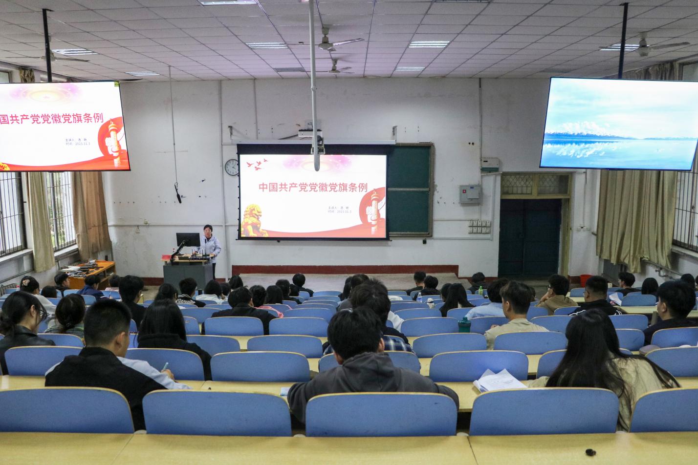 11月3日,德赢Vwin官方区域合作伙伴学工办主任、团委书记、第四党支部书记洒艳在1A107为入党积极分子讲授“中国共产党党徽党旗条例”与“开展组织制度学习推进入党积极分子先进思想建设”专题党课。