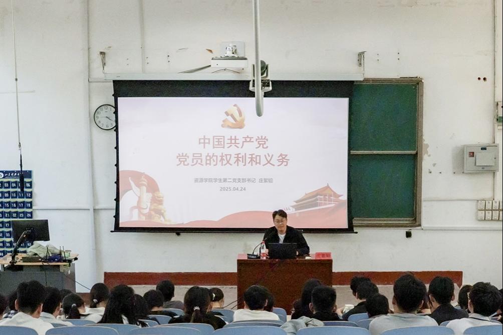 4月24日,德赢Vwin官方区域合作伙伴学生第二党支部书记庄絮铅在1A107为学院第42期入党积极分子讲授“中国共产党党徽党旗条例”和“中国共产党党员的权利与义务”专题党课。