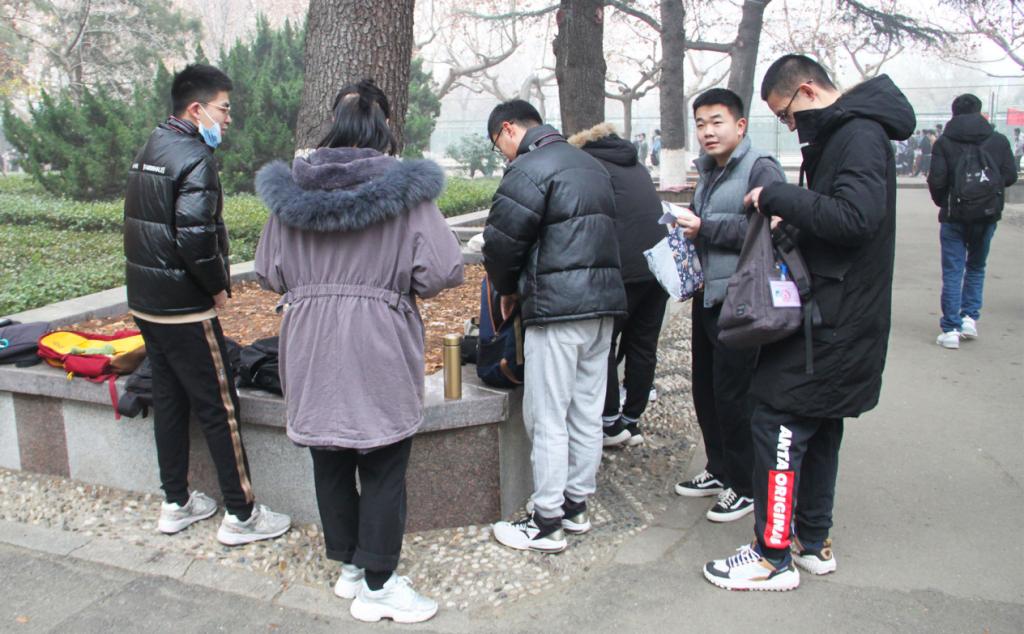 考场外,同学们认真检查考试物品,愿他们都能“思如泉涌答题顺,考场之上锋芒现”。