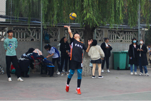 随着一声哨响,双方队伍展开对决。在第一节比赛中,我方惜败。中场休息时,我方队员迅速调整心理状态、重新进行战术规划,以昂扬的斗志投入到接下来的比赛。起跳、腾空、扣球、抽手、猛挥、拦球,条条抛物线都是队员们默契配合的杰作,缜密的队形部署和精诚密切的合作给对手增加了无穷的困扰,擦边球、压线球成为我方球员场上得分的“大杀器”。场外掌声雷鸣、欢呼不断,最终,我方队员连下三城,以3:1的优异成绩获胜。