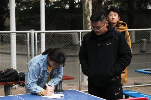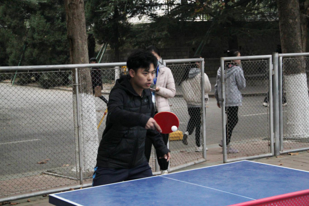 本次乒乓球个人赛决赛采用五局三胜制,以抽签的形式决定对手。赛前,学院选手王孜懿、刘明启提前到达比赛场地,进行热身活动。