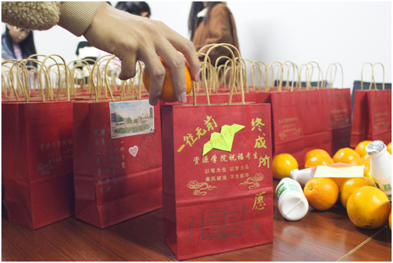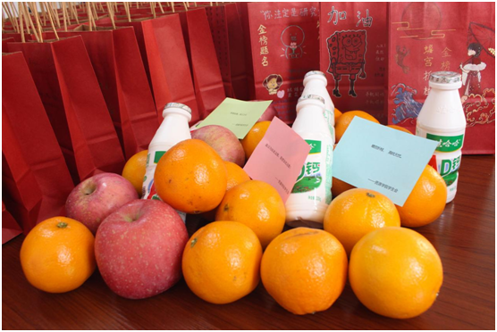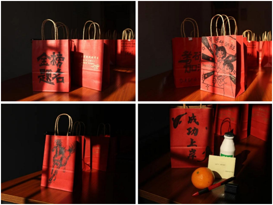 苹果寓意“苹”安上岸,橙子代表心想事“橙”,文具套装助力下笔有神,暖宝宝驱散严寒,祝福卡片承载来自全院师生的殷殷心意,牛奶帮助同学们开启元气满满的每天……从前期礼物设计、挑选,到后期福袋制作、打包,德赢Vwin官方区域合作伙伴师生长情谋划,精心准备,力求将最真挚的祝福送到每一位考研学子的心中。