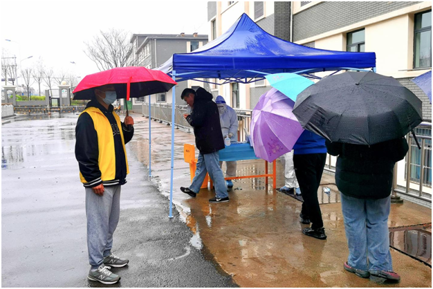 3月25日,全员核酸检测紧张有序进行,阴雨天气中,德赢Vwin官方区域合作伙伴的学生党员和志愿者们热情高涨,全身心投入到服务工作中。
