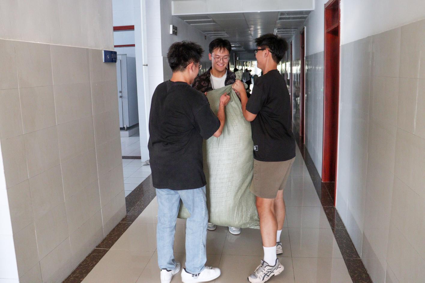 工作现场,各部门成员分工细致、协调配合,将新生卧具运送到相应宿舍,并摆放到每一张床位上。整个过程清点、搬运、分发、摆放、检查核实流畅有序,无缝衔接,确保了卧具搬运的高效率和零误差。