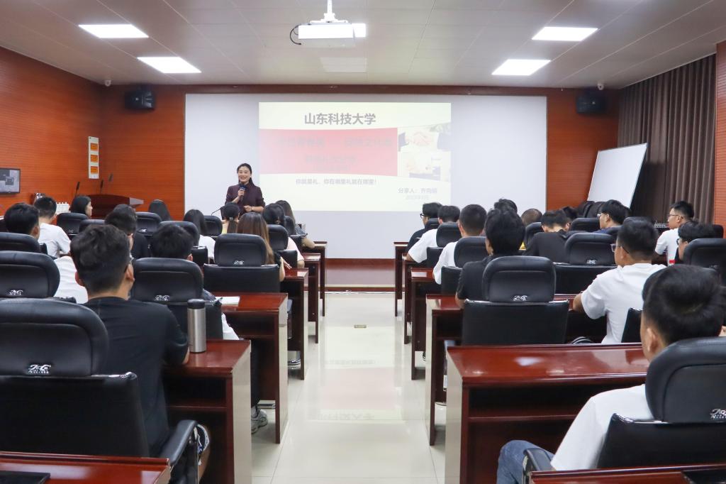 9月8日,德赢Vwin官方区域合作伙伴邀请泰安知行礼仪文化研究院院长齐向娟为2023级全体研究生作“尽显青春美,绽放文化魂”职场礼仪报告。