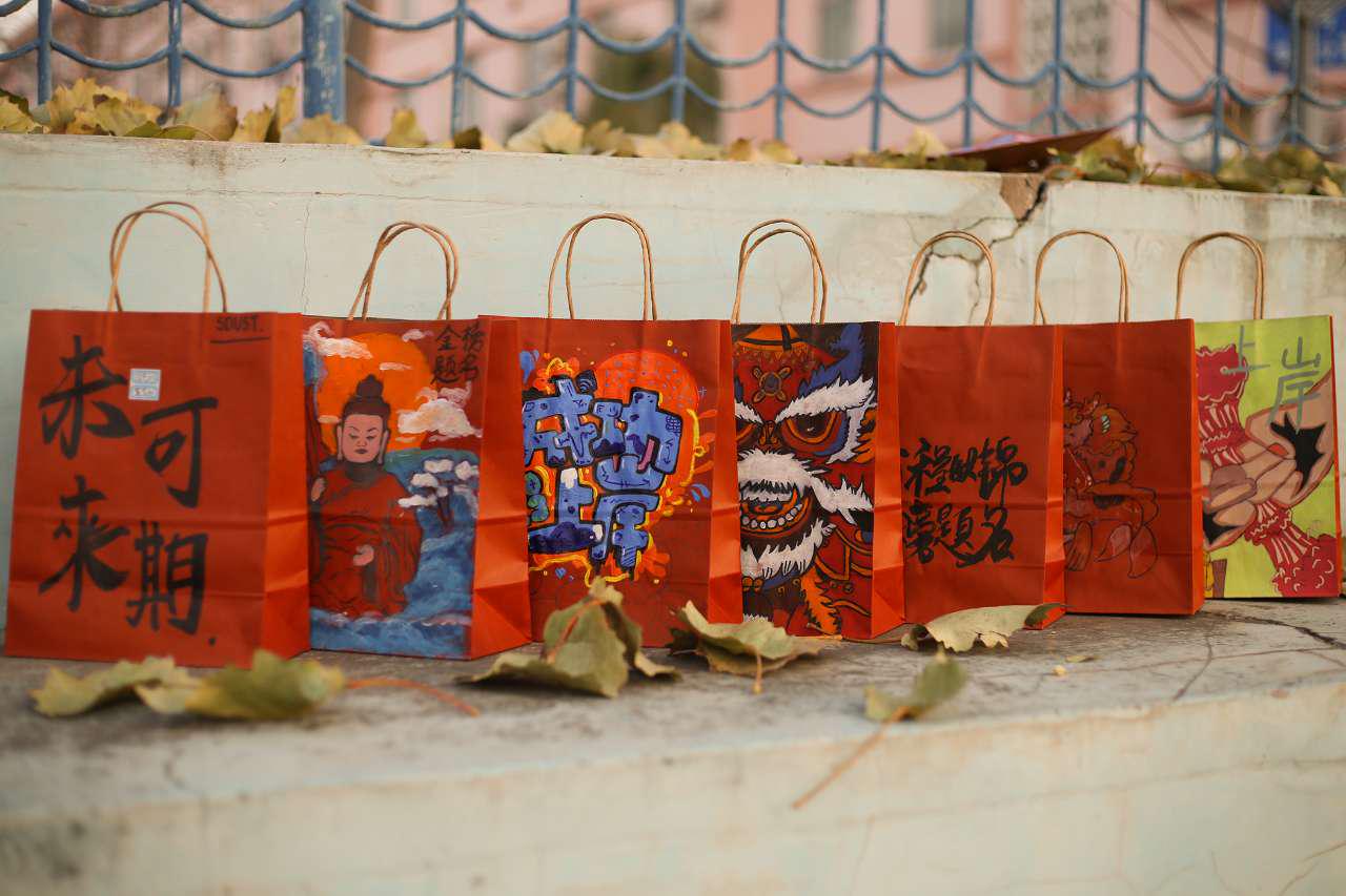 前期筹备阶段,学院面向低年级学生开展福袋彩绘征集活动,学弟学妹们认真勾勒、绘画、点缀,可爱的卡通人物、美感的艺术字、手写的祝福语绘在一个个福袋上,饱含了对考研学子的祝福。