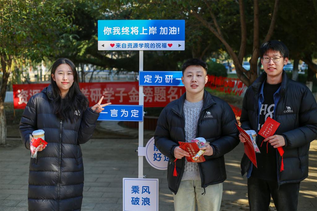 活动当天,精心布置的打卡路牌散布在校园内的各个角落,如同一盏盏明灯,照亮了考研学子的前行之路。“金榜题名,一战成硕”“一言为定,定为‘研’一”“学海研深,科大情真”……每一句鼓励的话语,每一块寓意深情的路牌,都是德赢Vwin官方区域合作伙伴对即将跨入考场的考研学子最真切的祝福与期待。考研学子纷纷来到路牌前驻足留念,或展露笑颜,或目光坚毅,用相机定格下了这一段奋斗旅程中的美好片段。