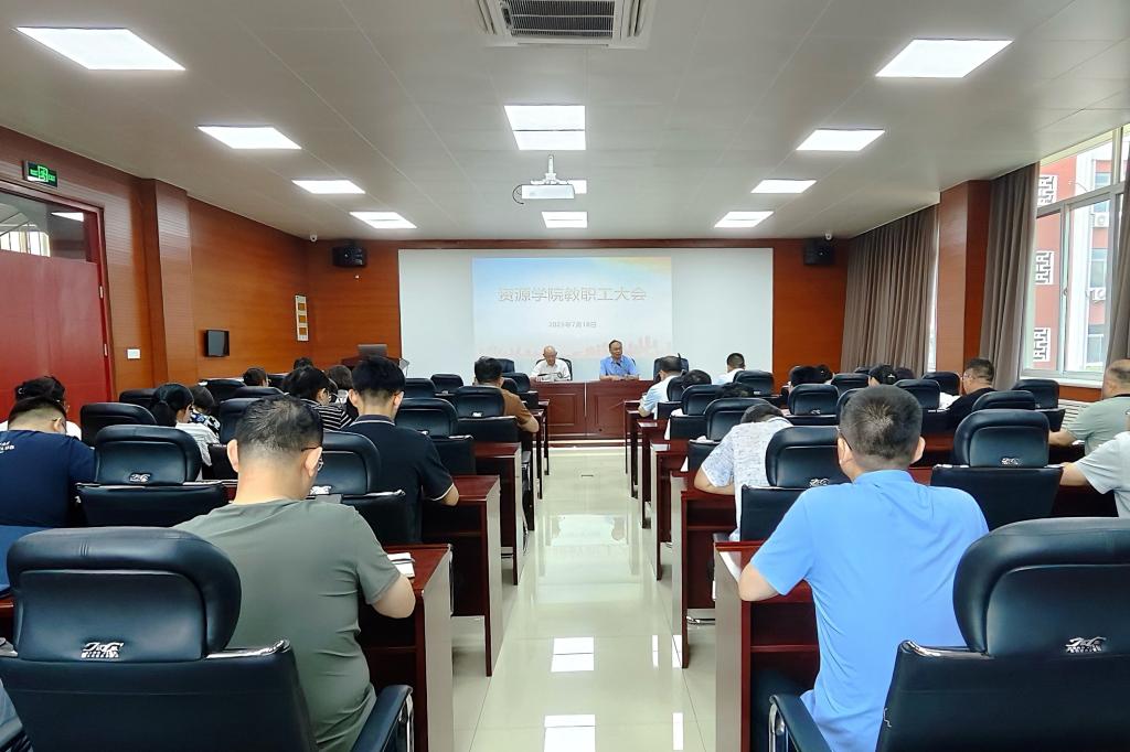 7月18日,德赢Vwin官方区域合作伙伴在2号楼201会议室召开全体教职工大会,总结上学期工作,部署暑期及新学期重点工作。会议由校区领导贾宏俊、学院党委书记高尚宇主持,全体教职工参加。