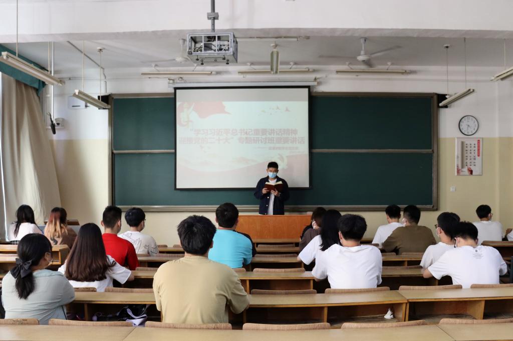 与会人员集体学习了习近平总书记在“学习习近平总书记重要讲话精神,迎接党的二十大”专题研讨班发表的重要讲话精神,并观看了“高举伟大旗帜 擘画强国蓝图—习近平总书记在省部级主要领导干部专题研讨班上的重要讲话精神,在全国各地干部群众中引起强烈反响”视频。会后,学生党员纷纷表示,要高举中国特色社会主义伟大旗帜,坚定不移听党话、跟党走,不断锤炼本领、奋发作为,努力为国家富强、民族复兴、人民幸福贡献青春力量,以实际行动迎接党的二十大胜利召开。(文:李雅娜 图:刘璇)
