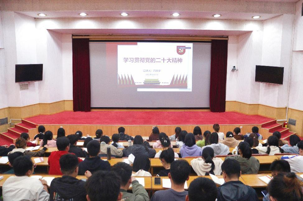 4月27日,德赢Vwin官方区域合作伙伴党委书记高尚宇线上讲授“学习贯彻党的二十大精神”专题党课。学院第38期入党积极分子在四号楼报告厅集体听课学习。