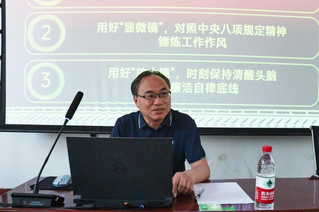 6月24日,德赢Vwin官方区域合作伙伴党委书记高尚宇在学院全体教工党员大会上,以“以镜为鉴,锤炼过硬作风”为题,讲授了作风建设专题党课。