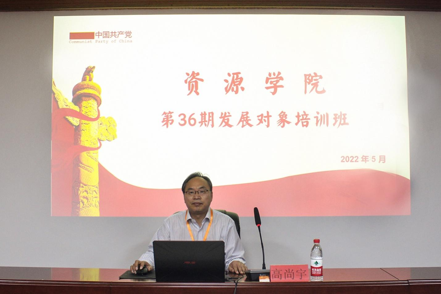 5月3日,德赢Vwin官方区域合作伙伴党委书记高尚宇为学院第36期发展对象讲授“用对党忠诚诠释理想信念坚定——学习贯彻党的十九届六中全会精神”专题党课。