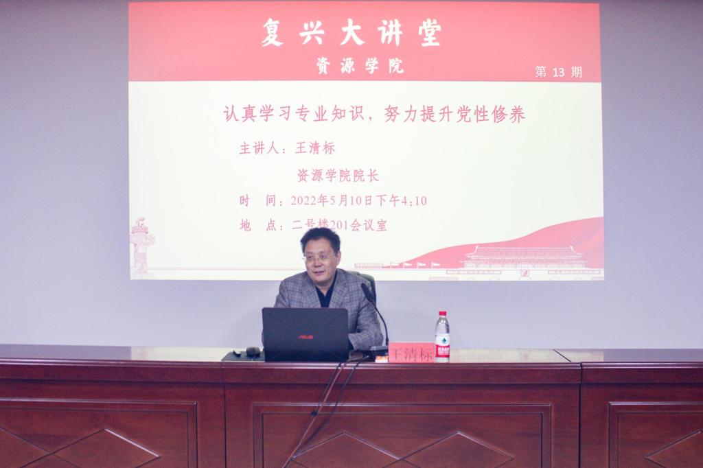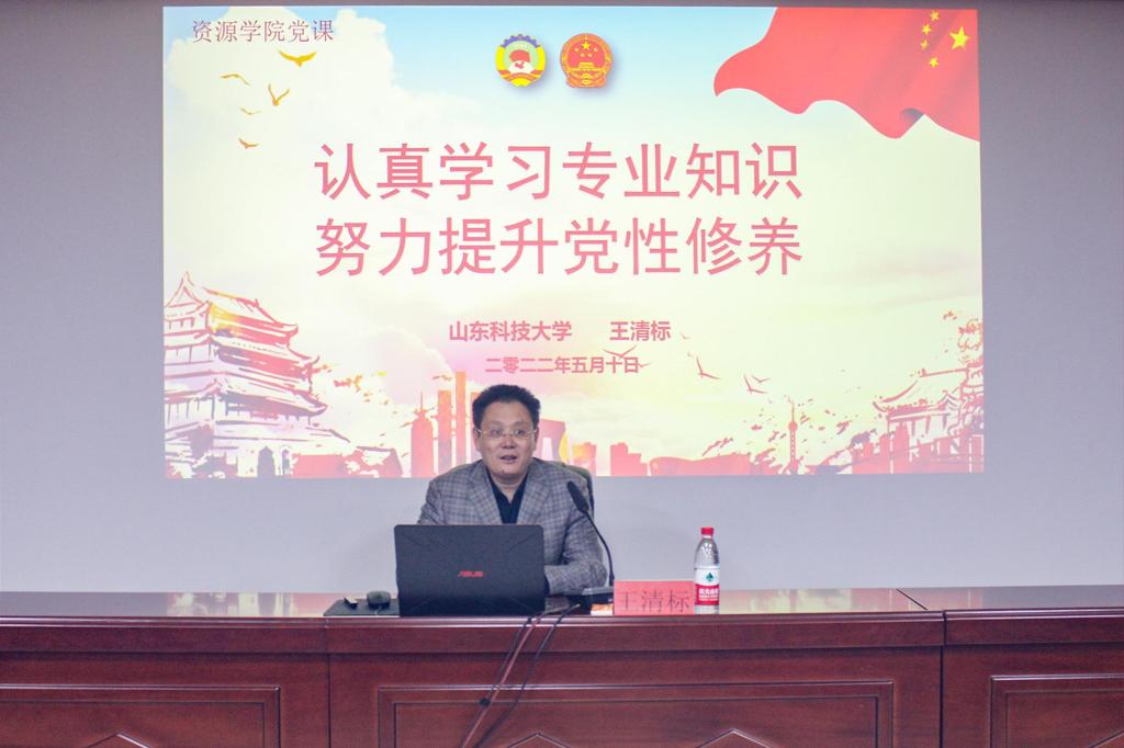 5月10日,德赢Vwin官方区域合作伙伴院长王清标教授在2号楼201会议室为学院第36期发展对象讲授“认真学习专业知识,努力提升党性修养”专题党课。