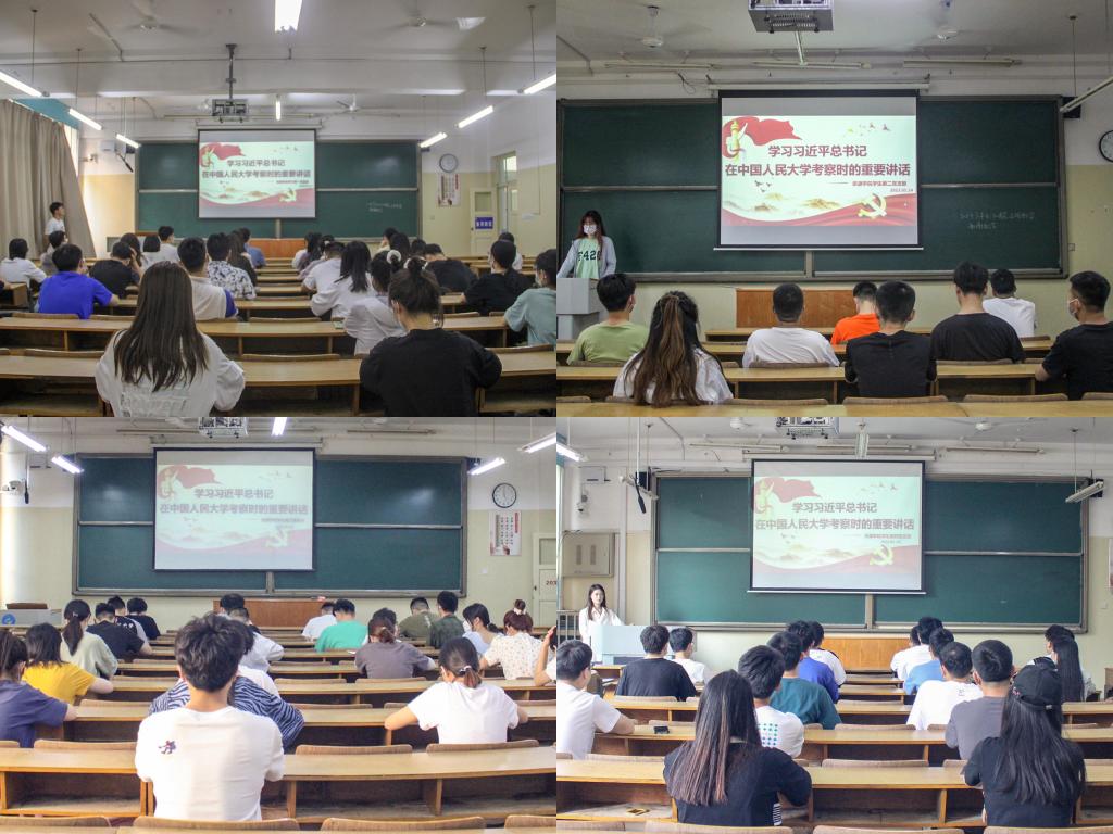 5月24日,德赢Vwin官方区域合作伙伴各学生党支部分别在5#201、202、203、204开展“学习习近平总书记在中国人民大学考察时的重要讲话精神”主题党日活动,学院全体学生党员参加。