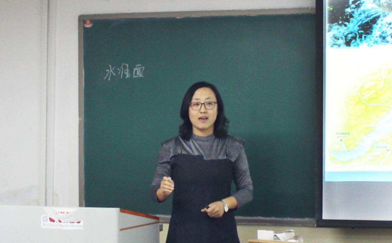 比赛采用现场抽签的形式决定授课顺序。三位参赛教师分别以“水准面的不平行性”“砾岩主要成因类型”与“岩层控制的关键层”为题,通过教学展示与教学反思两个环节,全面、详尽地展示了个人教学方式与风格。其中,张晨晰以“人往高处走,水往低处流”开篇。随后,她通过实例讲解、原理分析,清晰陈述了水准面不平行性的产生原因与对测绘勘察的影响。最后,她将教学内容延伸至实际运用,提出在实地勘测中,应当按所采用的正常高系统加以必要修改。各参赛教师声情并茂、挥洒自如,以精彩的课堂设计、沉稳从容的授课风格赢得评委的青睐与观摩教师的认可。