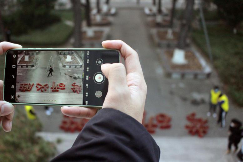 “考研必胜”四个字摆在了教学楼前,也深深印在了考研学子的心中。无数同学驻足围观,教学楼内办公的教师,也拿出手机记录此刻。