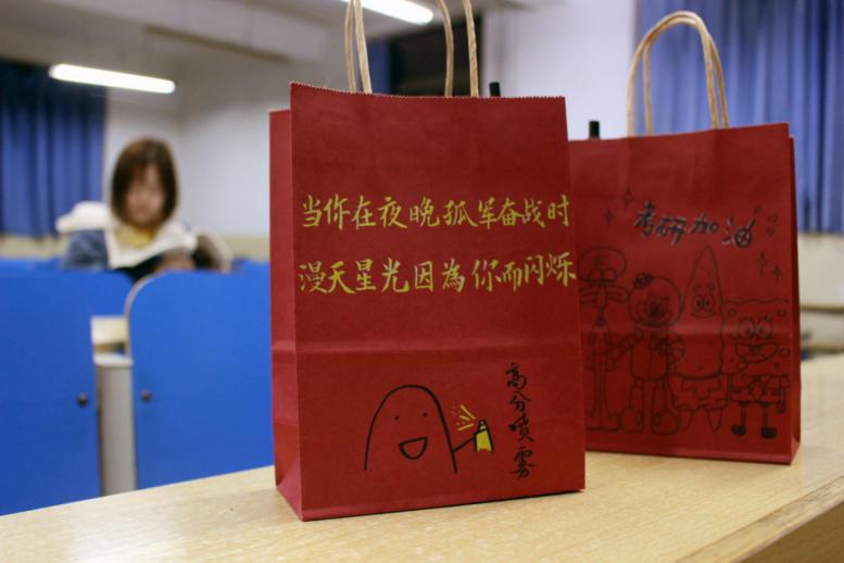 福袋已被填满,它们将满载着学院师生的浓情爱意,为考研学子送去问候与祝福。