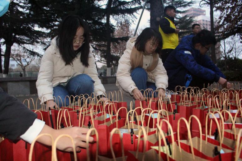 “还有多少祝福,我们一定送出;还有什么需求,我们一定满足”,辅导员老师亲力亲为,贴心指导工作人员将礼物装进福袋。手中所拿的,不仅仅是礼物,更是美好的祝福与期盼。