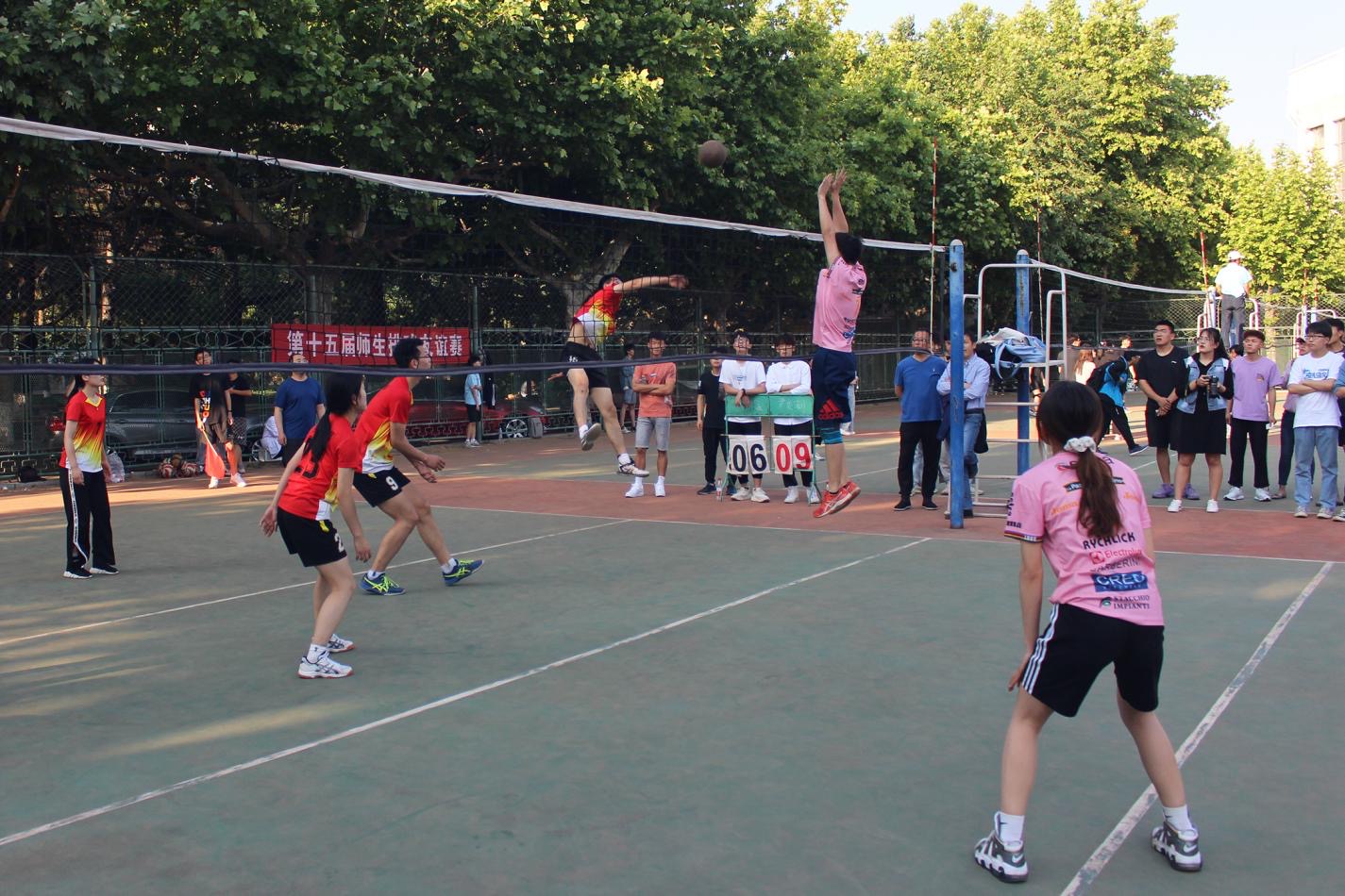 完美扣杀,赢得胜利。资源学子打出绝杀球,成功晋级决赛。