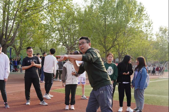 “重心后移,手臂弯曲,力量要在瞬间爆发;腰腹蓄势,摩擦蹬地,身体各部位要协同发力。”秦伟老师亲自上阵指导示范,为学院健儿传授独家经验。