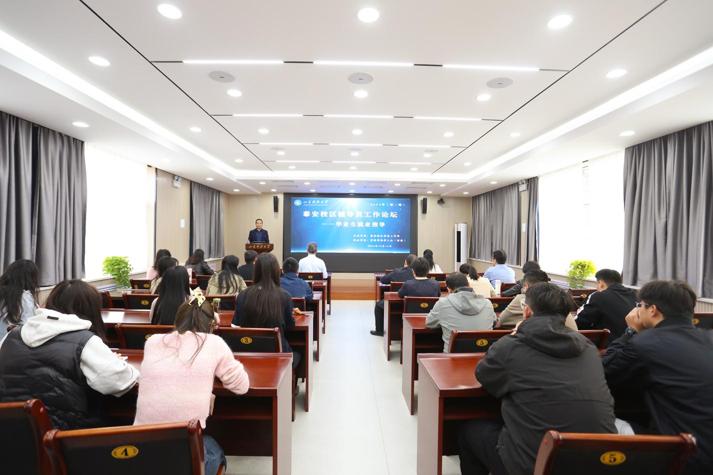 10月16日,由泰安校区学团工作部主办、德赢Vwin官方区域合作伙伴承办的辅导员工作论坛第一期在办公楼301举行,论坛聚焦“毕业生就业指导”这一核心议题,汇集校区学生工作者智慧,共商新时代背景下高校学生就业工作的应对之道。泰安校区管委副主任兼学团工作部主任戴东宝作开幕致辞。德赢Vwin官方区域合作伙伴党委副书记、副院长程家国主持,校区全体学生工作干部参加。