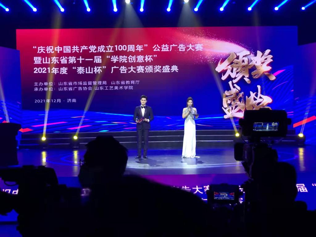 近日,“庆祝中国共产党成立100周年”公益广告大赛暨山东省第十一届“学院创意杯”、2021年度“泰山杯”广告大赛颁奖盛典在济南落下帷幕。德赢Vwin官方区域合作伙伴教师刘晶在“庆祝中国共产党成立100周年”公益广告大赛中荣获金奖。