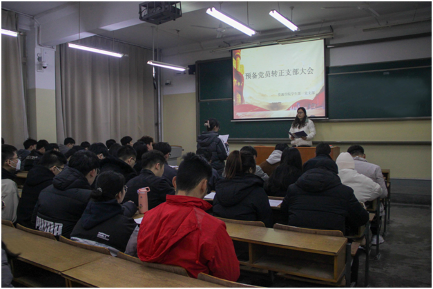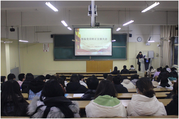 12月29日,德赢Vwin官方区域合作伙伴学生党支部在5#303、5#306教室召开预备党员转正大会。大会分别由学生第一、第二党支部书记卢业美、洒艳主持,学院全体学生党员、预备党员参加。