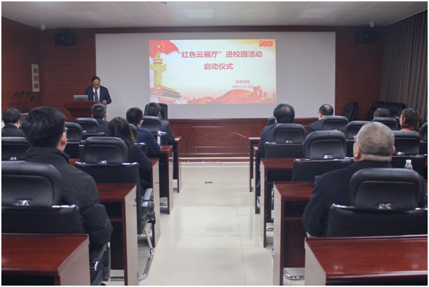 12月28日,德赢Vwin官方区域合作伙伴举行“红色云展厅”进校园活动启动仪式。学院党委书记高尚宇作动员讲话并讲授“传承红色基因,弘扬伟大建党精神” 专题思政课。教工党员和学生代表参加。