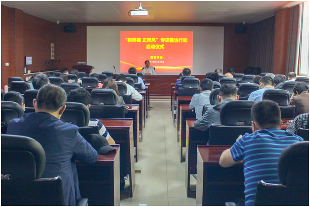 高尚宇向全体教职工提出三点要求:一是要着力提高思想认识,以专项活动为抓手,坚定为党育人、为国育才的初心使命,坚持以德立身、以德立学、以德施教,模范遵守新时代教师职业行为十项准则,争做“四有”好老师;二是加强学习,研读习近平总书记关于“三个牢固树立”“四有”好老师、“四个引路人”“四个相统一”“六要” 等重要论述精神,常态化开展“四史”教育;三要狠抓落实,注重实效。落实落细工作目标和工作任务,细化标准、规范程序、层层落实、加强监督考核,确保此次专项活动不走过场,不流于形式。(文:黄春美 图:张文欣)