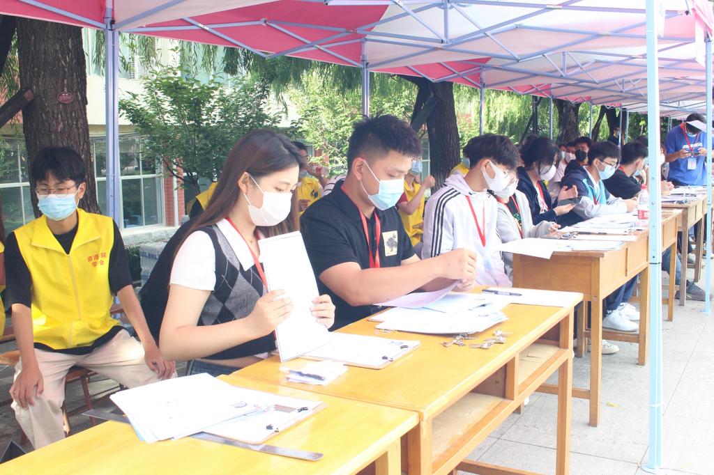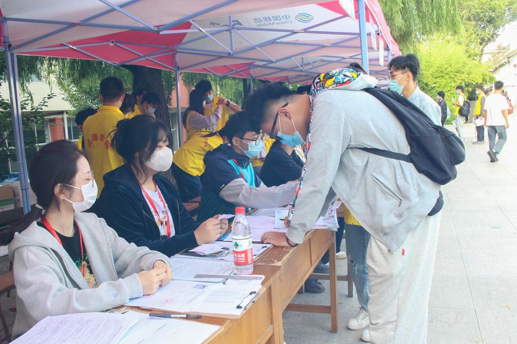 “同学,请出示您的行程卡,健康码。”“请您全程佩戴好口罩。”学院迎新工作人员从严抓实抓细常态化疫情防控各项工作,亲切叮咛,严格监察,筑牢疫情防线,保障每位新生安全进校。