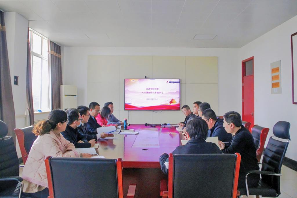 4月26日,德赢Vwin官方区域合作伙伴党委在2号楼204会议室开展大兴调查研究专题学习活动,学院党委书记高尚宇通过线上视频主持,学院班子成员及全体党支部书记参加。