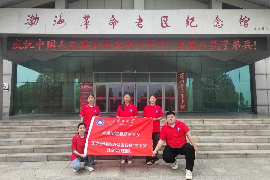 为激发大学生爱国热情,凝聚奋进力量,8月4日,德赢Vwin官方区域合作伙伴社会实践团队赴滨州渤海革命老区纪念园开展爱国主义教育活动。