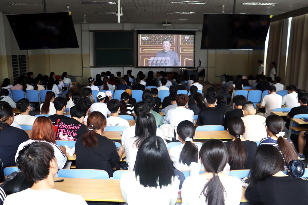 9月3日,德赢Vwin官方区域合作伙伴组织师生集体观看中国人民抗日战争暨世界反法西斯战争胜利80周年大会,深化爱国主义教育,弘扬伟大抗战精神。