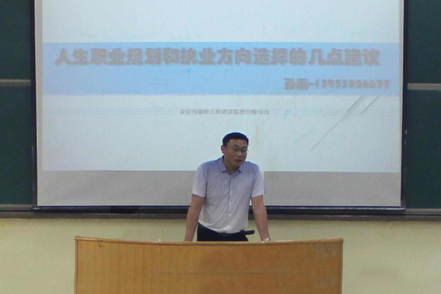 5月31日,德赢Vwin官方区域合作伙伴在5#206举办复兴大讲堂第7期--《谈职业规划和执业方向的几点建议》专家讲座。本次讲座由学院副院长李楠主持,特邀国家注册监理工程师、高级工程师、山东省评标专家孙鹏担任主讲人,学院同学积极报名参加。