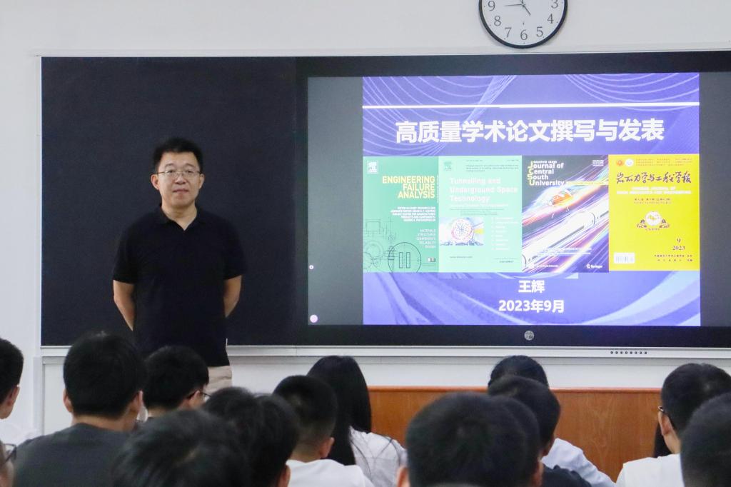 9月6日,德赢Vwin官方区域合作伙伴副院长王辉在东校园5#301为2023级全体研究生作“高质量学术论文撰写与发表”学术讲座。