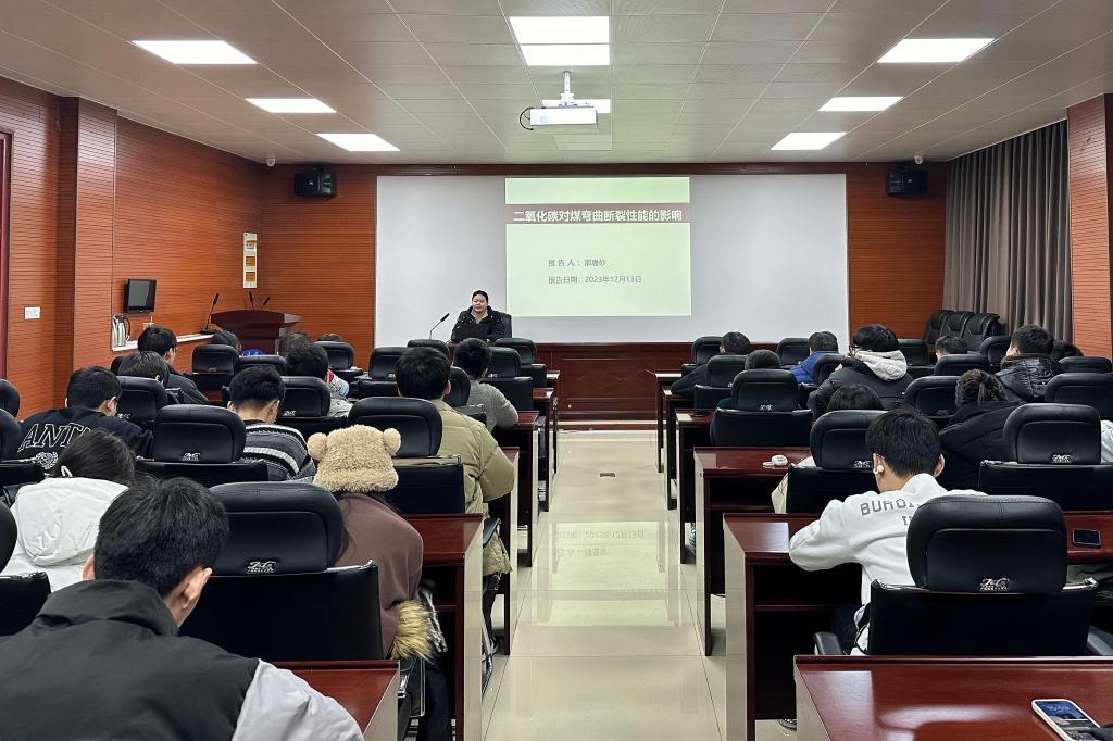 12月13日,德赢Vwin官方区域合作伙伴教师邵唐砂在东校园2号楼201会议室为研究生作“二氧化碳对煤弯曲断裂性能的影响研究”学术报告。